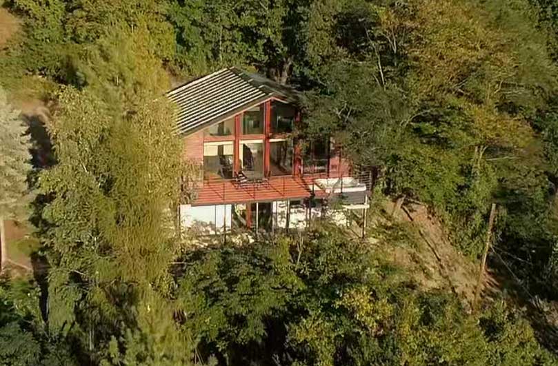 A Domb Ház a Dunakanyarra néző egyedi apartman, jakuzzival és terasszal az erdő szélén.